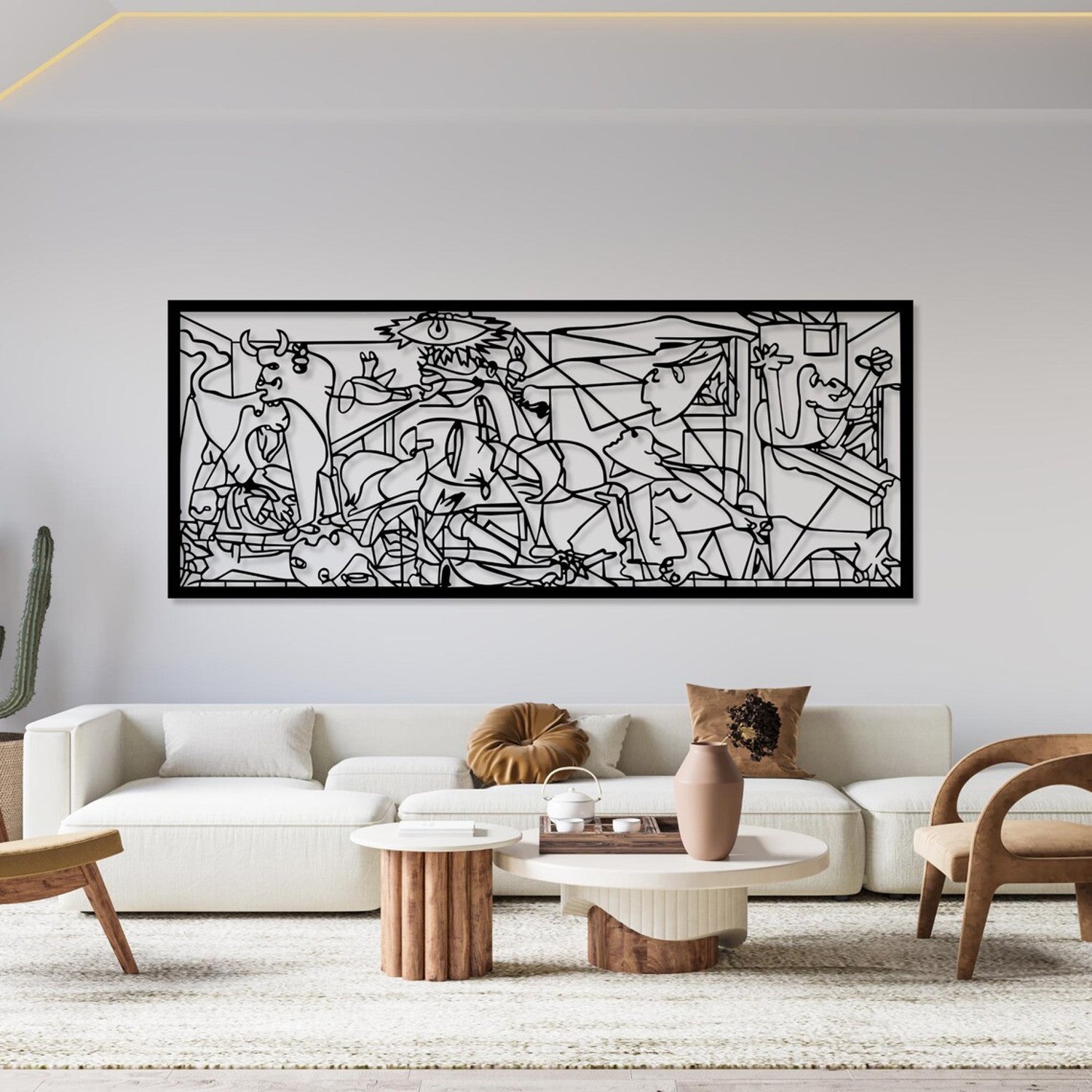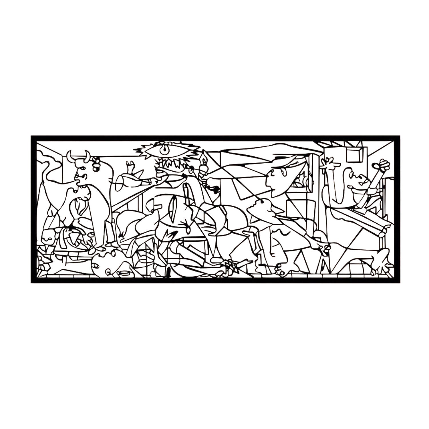 Quadro traforato, decorazione murale 3D, quadro 3D "Guernica di Pablo Picasso" 100x40cm Nero