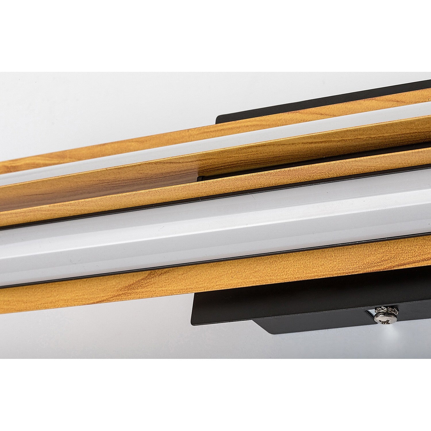 Lampada a parete Remiel è consigliata soprattutto a chi desidera arredare un soggiorno moderno con un design unico e suggestivo. Per quanto riguarda la combinazione di colori, l'apparecchio Remiel, realizzato in metallo, è una combinazione di nero opaco con elementi in simil-legno.