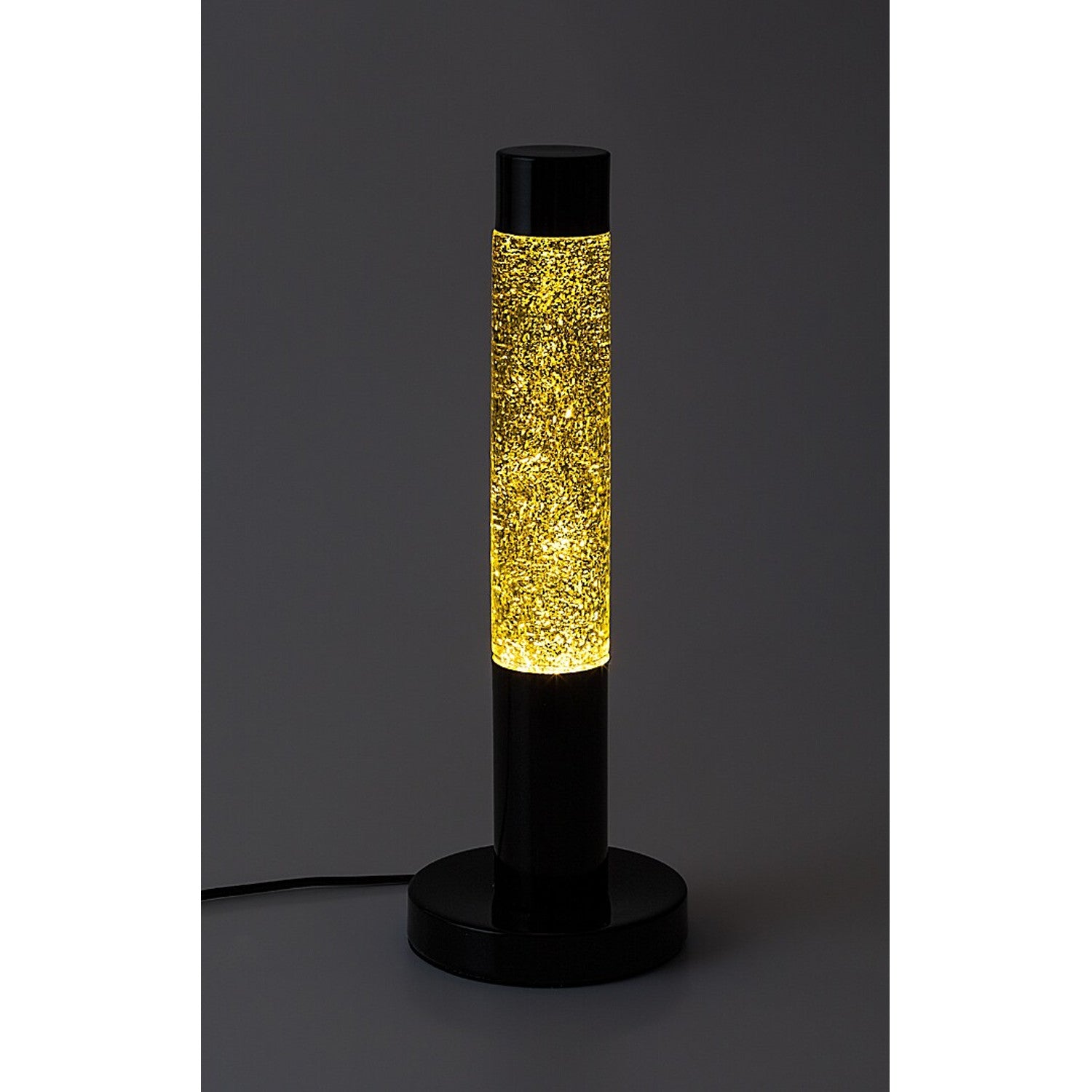 La lampada decorativa Rabalux Lavastic è la scelta perfetta per chi cerca un'illuminazione d'atmosfera spettacolare ed elegante. L'interno della lampada è riempito con un liquido dorato e scrostato, che conferisce a questo modello un aspetto luminoso e festoso. Il corpo cilindrico e la base decorativa a forma di disco sono in metallo nero, mentre il paralume è in vetro trasparente.