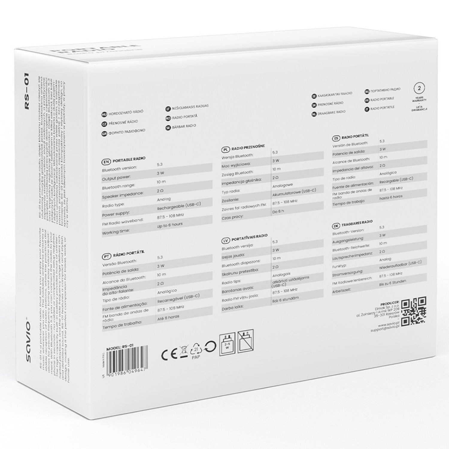- Radio portatile, SAVIO RS-01, nero