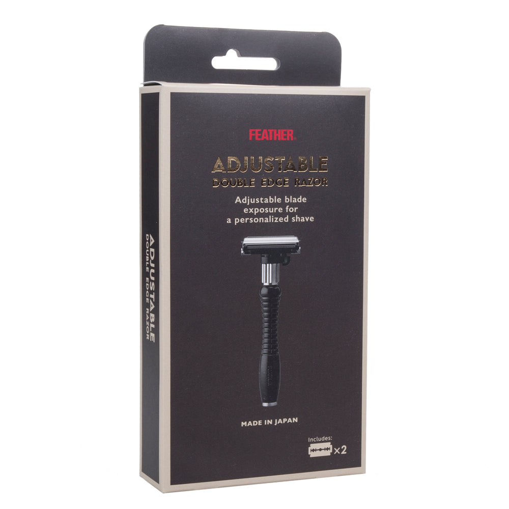 Rasoio da barba Feather DER-A con lame intercambiabili. Testina in acciaio inox. 2 impostazioni, apertura a farfalla.
