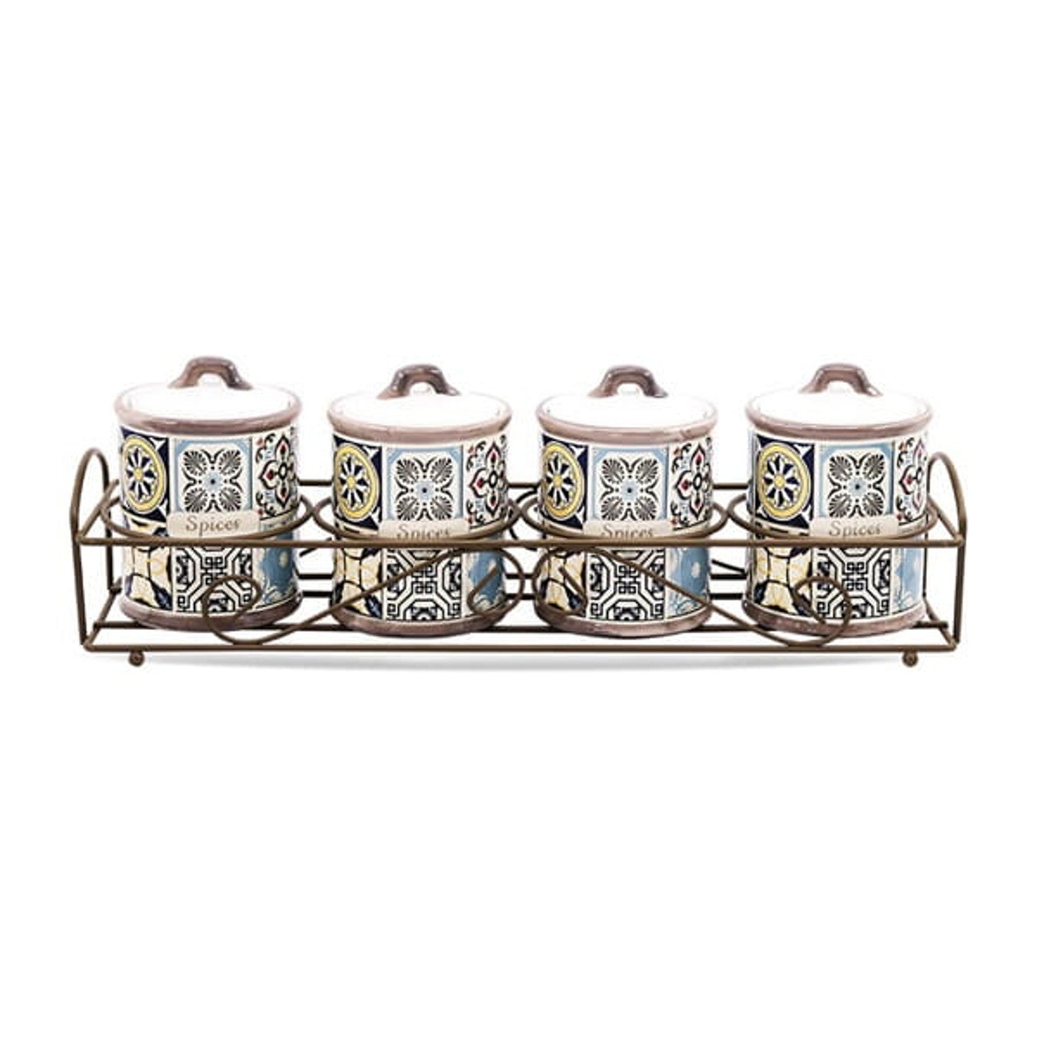 Set di contenitori in ceramica Holiday in Porto Maestro, 5 pezzi, capacità 200 ml, ideale per spezie, con supporto in metallo, MR-20005-04CS